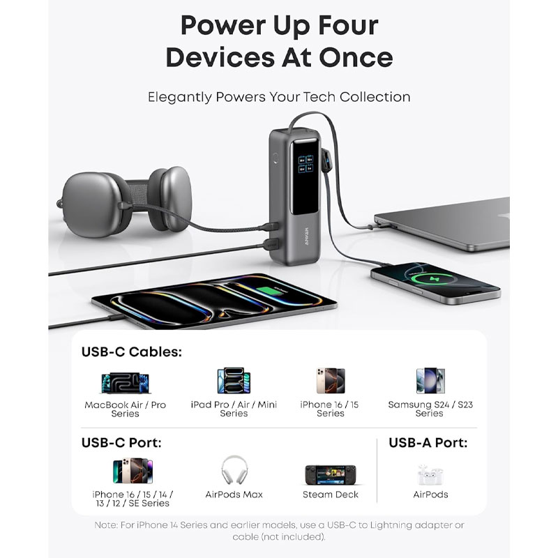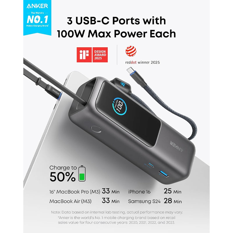 Anker Zolo Power Bank 25K 165W (مدل A1695) محصولی بسیار حرفهای برای کاربران سنگینکار به شرح زیر: